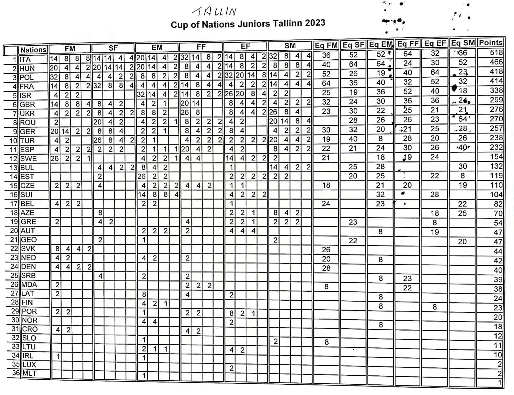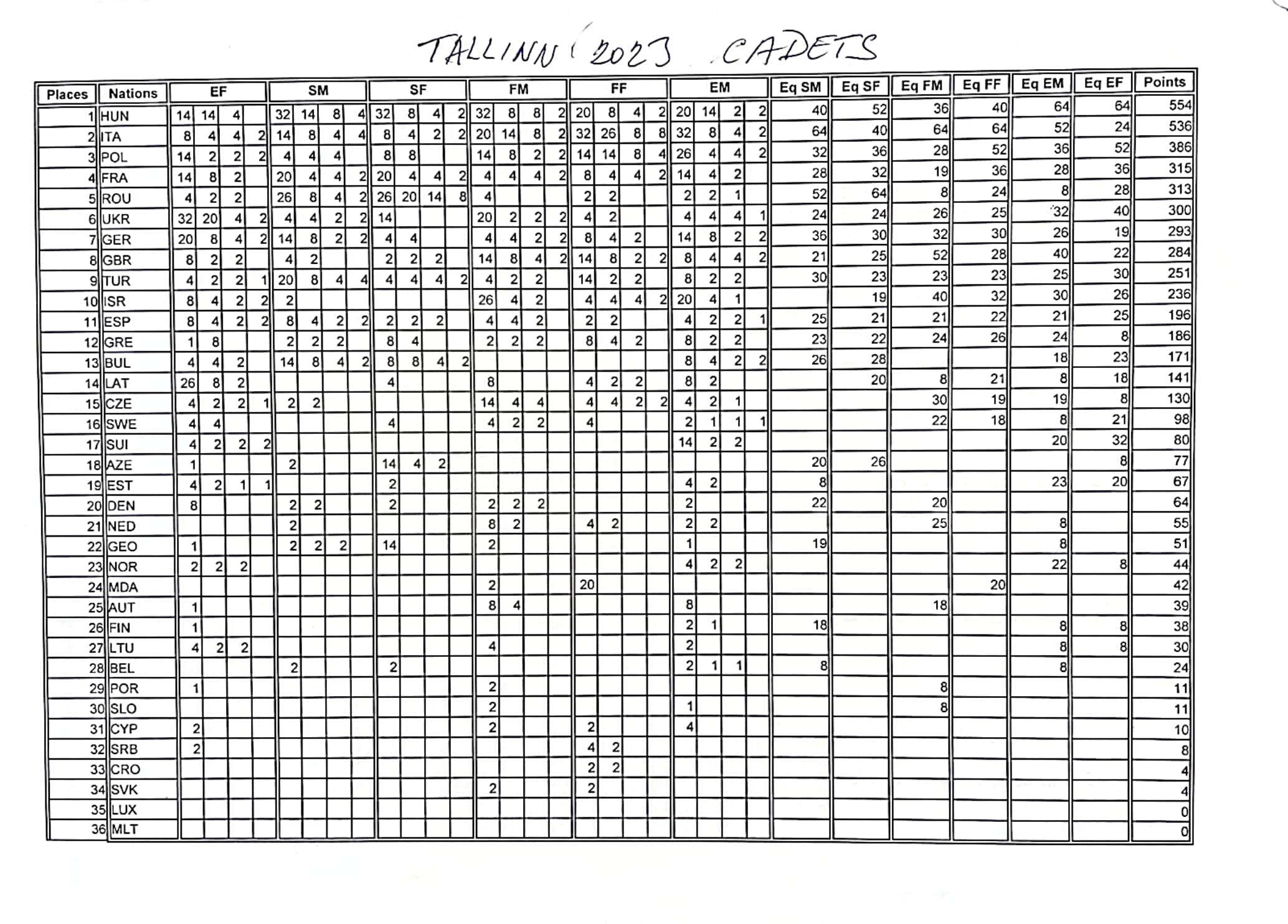 In this sense, the ranking of the "Grand Prix of Nations" has been drawn up, not to highlight who is already gratified by the medallist ranking, but to have a complete picture of the European youth fencing movement in its entirety.
